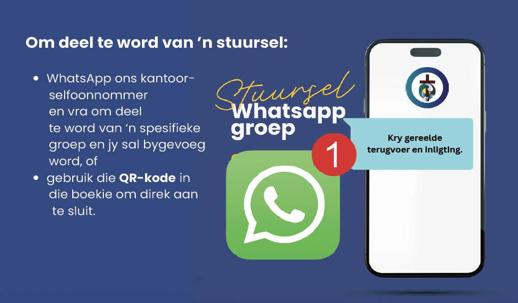 Sluit by ons WhatsApp-groep aan (QR-kode) vir nuus en gebedspunte.